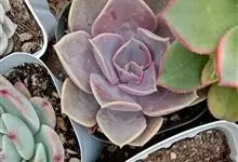紫珍珠是景天科石莲花属的多年生肉质草本植物。植株中小型;叶片肉质,匙形,呈莲座状紧密排列;叶片粉紫色,叶缘呈粉白色,光照充足时颜色亮丽,不足时叶色会呈现深绿色或灰绿色,叶面光滑,被轻微白粉,…全部>>