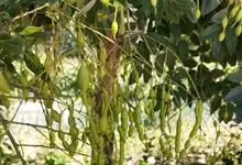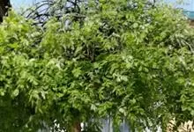 槐 Schott),豆科槐属的落叶乔木。树皮暗灰色,树冠球形,老时则呈扁球形或倒卵形。枝叶密生,羽状复叶。圆锥花序顶生,花蝶形,夏季开黄白色花,略具芳香。荚果肉质,念珠状不开裂,黄绿色,常悬垂树梢,…全部>>