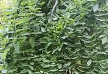龙爪槐为乔木,高达25米;树皮灰褐色,具纵裂纹。当年生枝绿色,无毛。羽状复叶长达25厘米;叶轴初被疏柔毛,旋即脱净;叶柄基部膨大,包裹着芽。圆锥花序顶生,常呈金字塔形,…全部>>