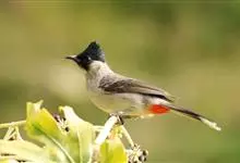 凤头雀嘴鹎:属小型鸟类,体长18-22厘米。嘴粗短、呈象牙色或乳黄色,前额和脸灰色,头顶黑色,有一朝前竖立的黑色羽冠。上体橄榄绿色,下体黄绿色,尾羽黄绿色具宽阔的黑褐色端斑。…全部>>