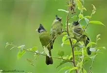 凤头雀嘴鹎:属小型鸟类,体长18-22厘米。嘴粗短、呈象牙色或乳黄色,前额和脸灰色,头顶黑色,有一朝前竖立的黑色羽冠。上体橄榄绿色,下体黄绿色,尾羽黄绿色具宽阔的黑褐色端斑。…全部>>