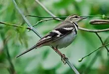 山鹡鸰:是中等体型的林鹡鸰,体长约17厘米,主要羽色为褐色及黑白色。头部和上体橄榄褐色,眉纹白色,从嘴基直达耳羽上方,下体白色,胸部具有两道黑色横斑纹,下面的横斑纹有时不连续。两翼黑褐色,…全部>>