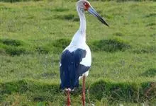 黑头鹮鹳:大型涉禽。体长102厘米,翼展150-175厘米,体重2050-2640克。寿命10年。嘴长而粗壮,飞时头颈伸直。雌雄相似。成鸟上体白色,下体白色。翼下覆羽有黑色横带,具绿色光泽和白色羽缘。…全部>>