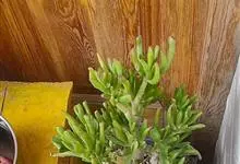 筒叶花月,是景天科青锁龙属的多年生草本植物。植株多分株,灌木状,茎较粗壮,圆柱形,表皮灰褐色;叶片肉质,互生,呈圆筒状,簇生于茎或分枝顶端,叶端呈斜截形,截面为椭圆形;花呈星状,淡白色;花期秋季。…全部>>