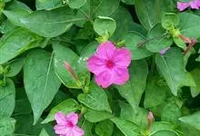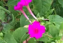 即紫茉莉,英文名:Four-o'clock,Marvel of Peru,为紫茉莉科、紫茉莉属多年生草本植物,一年生栽培。株高50~80cm。根粗壮,茎多分枝而散生。叶对生,卵形或心脏形。花数朵簇生…全部>>