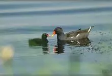 黑水鸡:是鹤形目、秧鸡科的鸟类,共有12个亚种。中型涉禽,体长24-35厘米。嘴长度适中,鼻孔狭长;头具额甲,后缘圆钝;嘴和额甲色彩鲜艳。翅圆形,第2枚初级飞羽最长,或第2枚和第3枚初级飞羽等长,…全部>>
