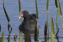 黑水鸡:是鹤形目、秧鸡科的鸟类,共有12个亚种。中型涉禽,体长24-35厘米。嘴长度适中,鼻孔狭长;头具额甲,后缘圆钝;嘴和额甲色彩鲜艳。翅圆形,第2枚初级飞羽最长,或第2枚和第3枚初级飞羽等长,…全部>>