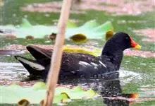 黑水鸡:是鹤形目、秧鸡科的鸟类,共有12个亚种。中型涉禽,体长24-35厘米。嘴长度适中,鼻孔狭长;头具额甲,后缘圆钝;嘴和额甲色彩鲜艳。翅圆形,第2枚初级飞羽最长,或第2枚和第3枚初级飞羽等长,…全部>>