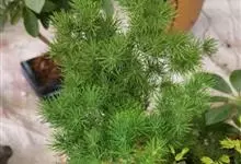 蓬莱松是天门冬科、天门冬属多年生丛生草本植物。宿存,圆柱形肉质根,纵截面为绿色和表面灰色。植株高可达3米。茎呈圆柱形或近四边形,底部木质化,具有灰色或灰褐色。幼嫩的茎在每个节上都被紫绿色鳞片包,…全部>>