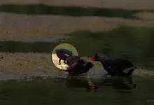黑水鸡:是鹤形目、秧鸡科的鸟类,共有12个亚种。中型涉禽,体长24-35厘米。嘴长度适中,鼻孔狭长;头具额甲,后缘圆钝;嘴和额甲色彩鲜艳。翅圆形,第2枚初级飞羽最长,或第2枚和第3枚初级飞羽等长,…全部>>