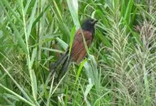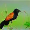 褐翅鸦鹃,是鹃形目鸦鹃科鸦鹃属的鸟类。褐翅鸦鹃的身体为黑色;头颈和胸带蓝紫色金属光泽并具黑亮的羽干纹,下胸至腹部泛金属绿光泽;两翼和肩部为棕栗色,外侧飞羽具暗色羽端,尾羽闪铜绿色光泽;虹膜赤红色,…全部>>