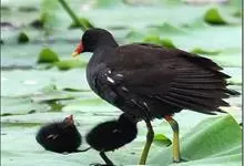 黑水鸡:是鹤形目、秧鸡科的鸟类,共有12个亚种。中型涉禽,体长24-35厘米。嘴长度适中,鼻孔狭长;头具额甲,后缘圆钝;嘴和额甲色彩鲜艳。翅圆形,第2枚初级飞羽最长,或第2枚和第3枚初级飞羽等长,…全部>>
