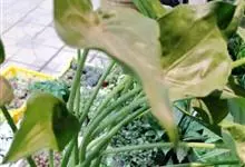 海芋 K. Koch),是天南星科海芋属的大型常绿草本植物;具匍匐根茎,有直立地上茎,基部生不定芽条;叶多数,亚革质,草绿色,箭状卵形,叶柄绿或污紫色,螺旋状排列,粗厚;花序梗圆柱形,绿色,有时污紫色,…全部>>