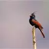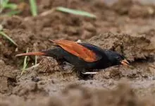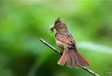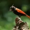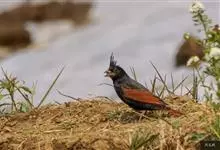 凤头鹀:属小型鸣禽,体重21-31克,体长134-175毫米。以头顶的细长羽冠为特征,雄鸟全身几乎均为黑色具蓝色光泽,两翅和尾以及尾上覆羽栗红色。雌鸟具短的褐色羽冠,上体暗橄榄褐色,…全部>>