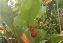 神秘果,山榄科神秘果属典型热带常绿灌木。其树高可达2~5米,叶子是倒披针形或倒卵形;花开叶腋,花是乳白色或淡黄色的,全年开花,花有淡香气味。果实成熟后呈鲜红色。花期2~5月,果期4~7月。…全部>>