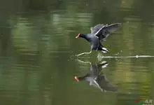黑水鸡:是鹤形目、秧鸡科的鸟类,共有12个亚种。中型涉禽,体长24-35厘米。嘴长度适中,鼻孔狭长;头具额甲,后缘圆钝;嘴和额甲色彩鲜艳。翅圆形,第2枚初级飞羽最长,或第2枚和第3枚初级飞羽等长,…全部>>