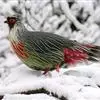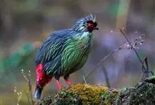 血雉雉科血雉属鸟类,别名血鸡、松花鸡,血雉的雄鸟大覆羽、尾下覆羽、尾上覆羽、脚、头侧、腊膜为红色,故称血雉。其别名甚多,各地皆异。在甘肃,因其胸侧和翅上覆羽沾绿,被称为“绿鸡”;因其羽毛形似柳叶,…全部>>