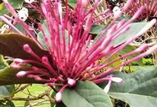 烟火树 Merr.)是唇形科、大青属常绿灌木或小乔木,株高可达4米。幼枝方形,墨绿色。叶对生,长椭圆形或披针形,先端尖,全缘或波状缘。纸质,叶背暗紫红色。聚伞状圆锥花序,顶生,小花多数,聚生成团,…全部>>