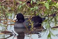黑水鸡:是鹤形目、秧鸡科的鸟类,共有12个亚种。中型涉禽,体长24-35厘米。嘴长度适中,鼻孔狭长;头具额甲,后缘圆钝;嘴和额甲色彩鲜艳。翅圆形,第2枚初级飞羽最长,或第2枚和第3枚初级飞羽等长,…全部>>