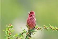 松雀:体重48-57克,体长192-213毫米。是一种体型较大而尾长的雀。嘴厚而带钩,两道明显白色翼斑与近黑的翼成对比。成年雄鸟深粉红色,具别致的脸部灰色图纹。成年雌鸟似雄鸟但橄榄绿色取代粉红色。…全部>>
