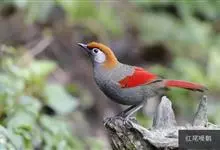 赤尾噪鹛中型鸟类,体长24~28厘米。头顶至后颈红棕色,两翅和尾鲜红色,眼先、眉纹、颊、颏和喉黑色,眼后有一灰色块斑。其余上下体羽大都暗灰或橄榄灰色。特征极明显,特别是通过鲜红色的头顶、翅和尾。…全部>>
