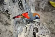 丽色噪鹛是红翅噪鹛的指名亚种。中型鸟类,体长23-28厘米。头顶灰橄榄褐色具粗著的黑色纵纹,头侧、颏、喉黑色,耳羽灰白色具黑色纵纹。背和胸、腹棕褐色,两翅具一大的鲜红色斑,尾亦为鲜红色。特征极明显,…全部>>