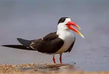 剪嘴鸥:是鸟纲、剪嘴鸥科的中型水鸟,体长40-43厘米。嘴粗,长而侧扁,基部较宽。下嘴较上嘴显著为长。嘴的颜色为橙红色,尖端黄色,脚短,红色。头顶至枕黑色。嘴基、颊、后颈和整个下体白色,上体和翅黑褐色,…全部>>