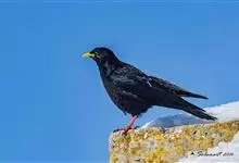 黄嘴山鸦是鸦科、山鸦属鸟类,体长38-42厘米。体形较细弱,黄色的嘴细而下弯,嘴亦较短。雌雄羽色相似。全身羽毛黑色沾褐具绿色金属光泽,尤以两翅和尾较明显。幼鸟腿灰色,嘴上黄色较少。…全部>>