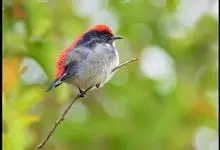 朱背啄花鸟:体重6-8克,体长81-97毫米。是一种小型的黑色及红色啄花鸟。雄鸟顶冠、背及腰猩红色,两翼、头侧及尾黑,两胁灰,下体余部白色。雌鸟上体橄榄色,腰及尾上覆羽猩红,尾黑。亚成鸟清灰色,嘴橘黄,…全部>>