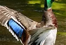 绿头鸭属游禽,大型鸭类。体长47-62厘米,体重大约1千克,外形大小和家鸭相似。雄鸟嘴黄绿色,脚橙黄色,头和颈辉绿色,颈部有一明显的白色领环。上体黑褐色,腰和尾上覆羽黑色,两对中央尾羽亦为黑色,且向…全部>>