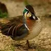 绿翅鸭是小型鸭类,体长37厘米,体重约0.5千克。嘴脚均为黑色。雄鸟头至颈部深栗色,头顶两侧从眼开始有一条宽阔的绿色带斑一直延伸至颈侧,尾下覆羽黑色,两侧各有一黄色三角形斑,在水中游泳时,极为醒目。…全部>>