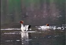 中华秋沙鸭为鸭科秋沙鸭属的鸟类,俗名鳞胁秋沙鸭,是中国的特有物种。嘴形侧扁,前端尖出,与鸭科其它种类具有平扁的喙形不同。嘴和腿脚红色。雄鸭头部和上背黑色下背、腰部和尾上覆羽白色;翅上有白色翼镜;头顶…全部>>