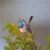 蓝点颏亦称“蓝喉歌鸲”,通称蓝靛颏儿。身体大小和麻雀相似,体长12-13厘米,体重17-18克。头部、上体主要为土褐色。眉纹白色。尾羽黑褐色,基部栗红色。颏部、喉部辉蓝色,下面有黑色横纹。下体白色。…全部>>