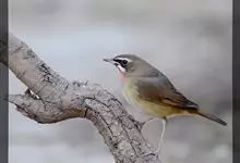 红点颏:是鸟纲、鹟科的鸣禽。又名西伯利亚歌鸲。体长14-17厘米,体重16-27克。雄鸟头部、上体主要为橄榄褐色。眉纹白色。颏部、喉部红色,周围有黑色狭纹。胸部灰色,腹部白色。雌鸟颏部、喉部不呈赤红色,…全部>>