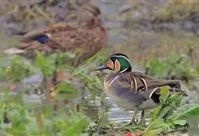 花脸鸭属小型鸭类,个体较绿翅鸭稍大,而较针尾鸭稍小。体长37-44厘米,体重0.5千克左右。雄鸭繁殖羽极为艳丽,特别是脸部由黄、绿、黑、白等多种色彩组成的花斑状极为醒目。胸侧和尾基两侧各有一条垂直白带,…全部>>