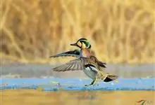 绿翅鸭是小型鸭类,体长37厘米,体重约0.5千克。嘴脚均为黑色。雄鸟头至颈部深栗色,头顶两侧从眼开始有一条宽阔的绿色带斑一直延伸至颈侧,尾下覆羽黑色,两侧各有一黄色三角形斑,在水中游泳时,极为醒目。…全部>>