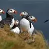 角海鹦:是鸻形目海雀科的鸟类,体重581-648克,体长约32厘米,翼展18-20厘米。是一种身体结实的鸟类,蹼脚、翅膀短,擅长游泳捕鱼,而在陆地上行走时则显得僵硬、步履蹒跚。有一张大嘴巴,呈三角形…全部>>