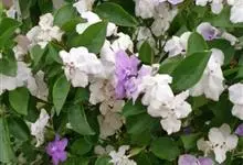 鸳鸯茉莉,茄科鸳鸯茉莉属常绿灌木植物,高1米。茎皮深褐色;分枝力强;单叶互生纸质;花簇生,聚伞花序,花冠五裂花瓣锯齿,含苞时蘑菇状深紫色,花香浓郁;花期4-10月。鸳鸯茉莉花朵芳香,…全部>>