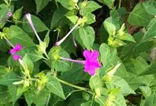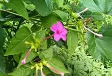 即紫茉莉,英文名:Four-o'clock,Marvel of Peru,为紫茉莉科、紫茉莉属多年生草本植物,一年生栽培。株高50~80cm。根粗壮,茎多分枝而散生。叶对生,卵形或心脏形。花数朵簇生…全部>>