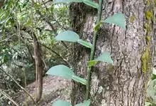 石柑子 Merr.):又名竹结草、爬山虎、巴岩香、百步藤。是单子叶植物纲、天南星科、石柑属附生藤本。茎亚木质,淡褐色,近圆柱形,具纵条纹,节上常束生长1-3厘米的气生根;分枝;叶片纸质,长6-13厘米,…全部>>