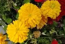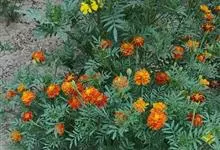 万寿菊是菊科万寿菊属一年生草本植物,别名孔雀菊、缎子花、臭菊花、西番菊、红黄草、小万寿菊、臭芙蓉、孔雀草。万寿菊茎近基部分枝。叶羽状分裂,长5-10厘米,宽4-8厘米,裂片长椭圆形或披针形,具锐齿,…全部>>