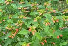 猩猩草:常绿或半常绿灌木,盆栽时株高0.5米-2米,在亚热带地区可长到6米以上。茎直立而光滑,单叶互生,卵状椭圆形至阔披针形,具不规则的深缺刻。长10-15厘米。花小,有蜜腺,排列成密集的伞房花序。…全部>>