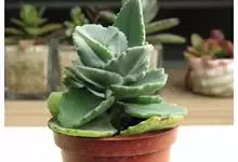 褐斑伽蓝是景天科伽蓝菜属的多年生多肉类植物,茎直立,多分枝,叶生于枝上,肉质叶片匙形,上面密被白色绒毛,下部全缘,叶缘上部有缺刻,缺刻处有深褐或棕色斑块。褐斑伽蓝原产非洲的马达加斯加岛。…全部>>