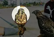 苍鹰是中小型猛禽。体长可达60厘米,翼展约1.3米。头顶、枕和头侧黑褐色,枕部有白羽尖,眉纹白杂黑纹;背部棕黑色;胸以下密布灰褐和白相间横纹;尾灰褐,有4条宽阔黑色横斑,尾方形。飞行时,双翅宽阔,…全部>>