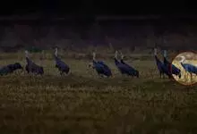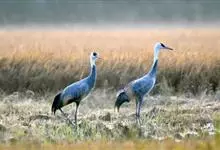 白枕鹤体形与丹顶鹤相似,略小于丹顶鹤,而大于白头鹤。上体为石板灰色。尾羽为暗灰色,末端具有宽阔的黑色横斑。取食时主要用喙啄食,或用喙先拨开表层土壤,然后啄食埋藏在下面的种子和根茎,边走边啄食。…全部>>