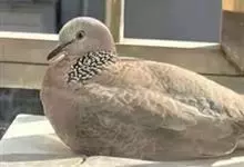 珠颈斑鸠,别名花斑鸠、珍珠鸠、花脖斑鸠、鸪鹪,是鸠鸽科副斑鸠属鸟类。体型中等,体长27~34cm,体重120~205g,雌鸟和雄鸟羽色相似,但雌鸟不如雄鸟羽色亮泽。珠颈斑鸠前额至头顶羽色稍淡,…全部>>