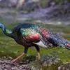 眼斑吐绶鸡:是火鸡科的两种鸟类之一。体型比普通火鸡略小些,体长1米左右,体重2.4-5.4千克,雄性比雌性略大,长得很特别,蓝色的秃脑袋上冒出几个橙黄色的疙瘩。但是它羽色艳丽,身体呈铜色及绿色。…全部>>