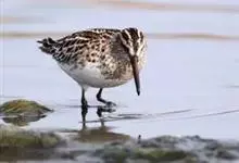 斑胸滨鹬小中型涉禽;体长23厘米,翼展37-45厘米,体重126克。嘴形直,有时微向上或向下弯曲;鼻沟长度远超过上嘴的1/2;羽色暗淡,雌雄羽色及大小大都相同;跗蹠后侧具盾状鳞,…全部>>