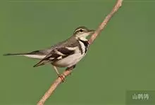 山鹡鸰:是中等体型的林鹡鸰,体长约17厘米,主要羽色为褐色及黑白色。头部和上体橄榄褐色,眉纹白色,从嘴基直达耳羽上方,下体白色,胸部具有两道黑色横斑纹,下面的横斑纹有时不连续。两翼黑褐色,…全部>>