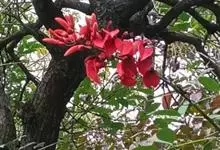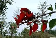 鹦哥花是豆科刺桐属植物,小乔木或乔木。树干和枝条具皮刺。羽状复叶,叶柄平滑,顶生小叶近肾形,侧生小叶斜宽心形,两面无毛。总状花序生于先端叶腋,花鲜红色,大,具花梗,苞片单生,卵形,花萼陀螺形,花冠红…全部>>